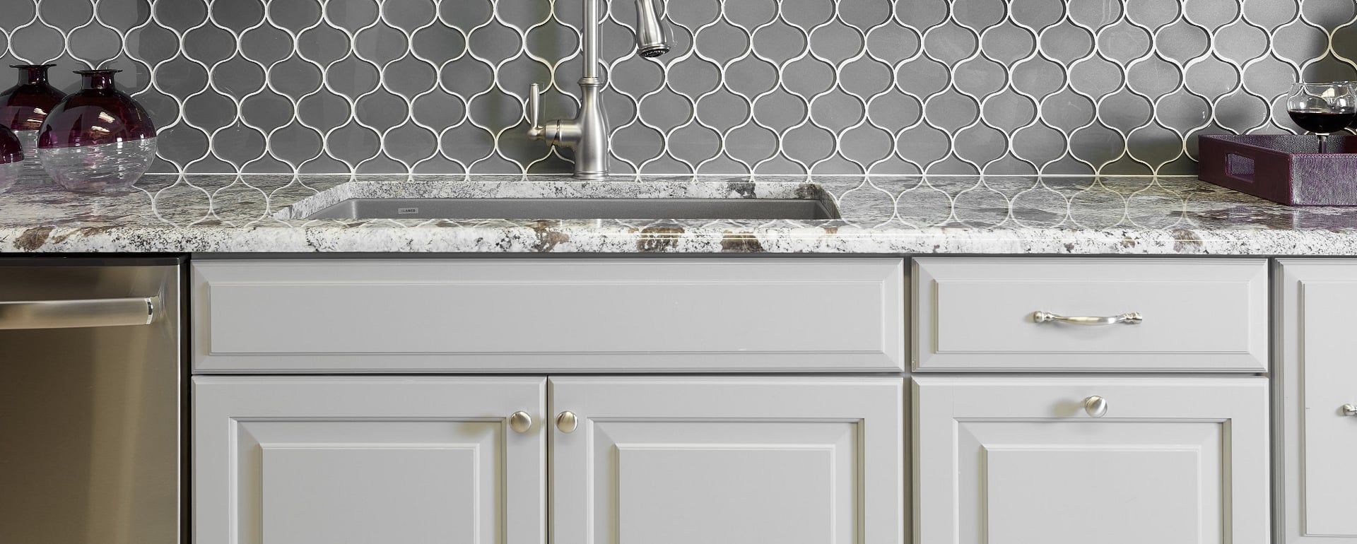 Here at Discount Tile Outlet, our glass tile is available in a variety of shapes, sizes and colors. It’s an excellent choice for adding a subtle pop of dimensional texture to a space or a dramatic punch of color. It’s important to make sure your installer uses white thinset behind glass tile because the backing is what gives it its color. Thus, the standard grey thinset will alter it a bit, using white will keep the color from the sample at its truest.