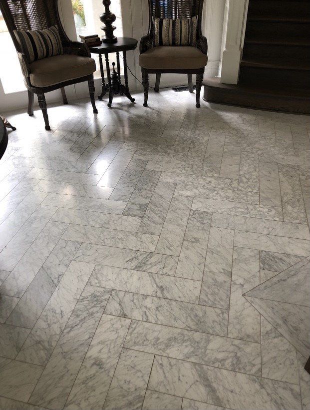 Depending on the specific type of natural stone, there are varying levels of maintenance involved in caring for it. It may require sealing and cleaning only with stone cleaner. Marble, limestone and travertine specifically are calcium-based stones, meaning they will etch (dulling finish and rough up a bit) after coming into any contact with acids. There is no way to prevent etching. For this reason, people often opt for honed finishes as they are "pre-etched."
